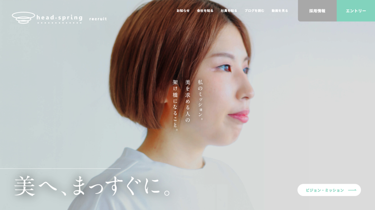 ヘッドスクリングのリクルートサイトを公開しました。 弊社のビジョンやミッション、成長を続ける事業内容や職種、 そして働く社員たち。 ヘッドスプリングが目指すもの、価値観を知ってください。 そして一緒に「美を求める人の架け橋」になっていきましょう。